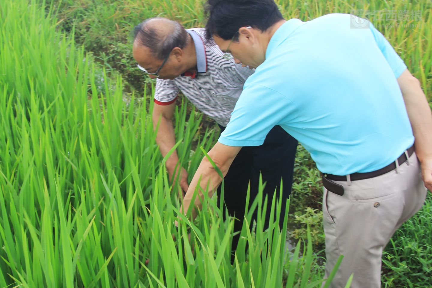 2018年7月6日,贛糧公司院士工作站入站院士謝華安院士及團隊專家到工作站富山鄉(xiāng)再生稻試驗基地進行現(xiàn)場指導(dǎo)。謝院士一行步入田間查看了各品種再生稻的生長情況,院士工作站向院士一行匯報的再生稻的試驗情況,謝院士對技術(shù)組的農(nóng)事管理表示肯定。對再生稻抽穗灌漿期的水肥管理和病蟲害的綠色防控進行指導(dǎo)。