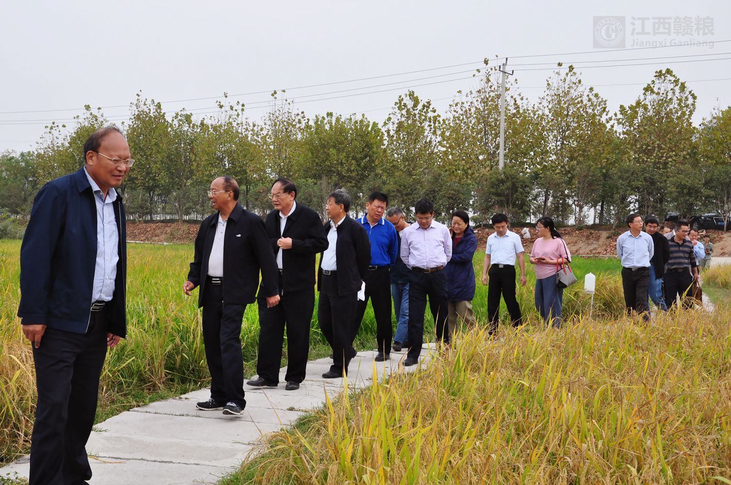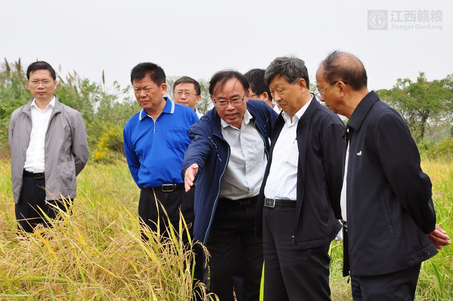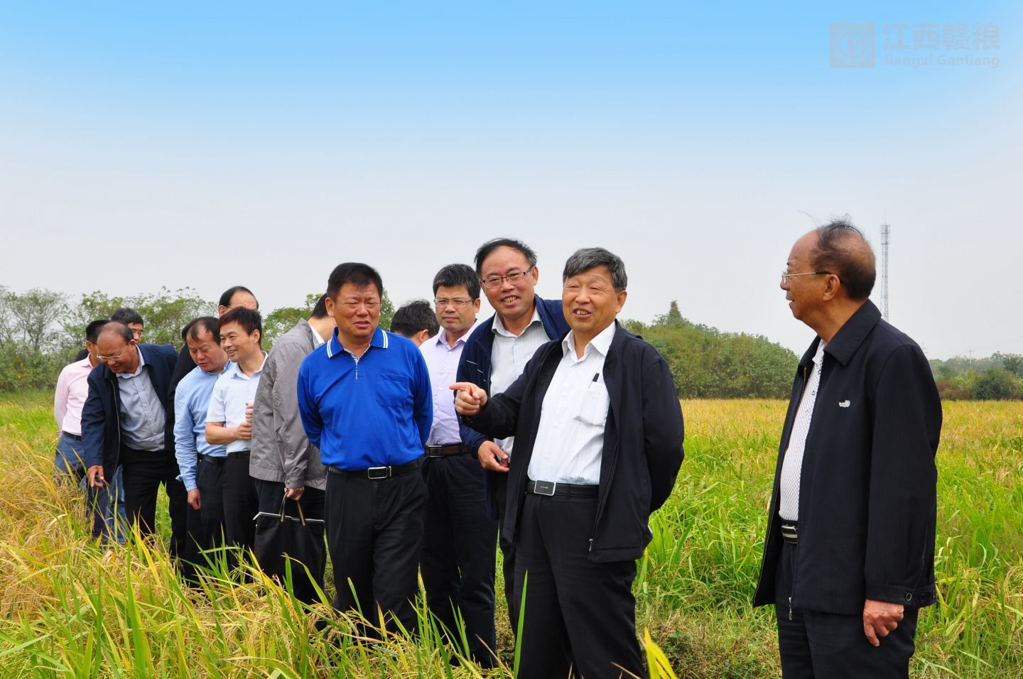 院士、領導、專家先到贛糧公司院士工作站南昌岡上試驗基地現(xiàn)場觀摩再生稻的試驗示范情況。院士一行步入田間查看了再生稻的生長情況,對再生稻示范品種“內(nèi)6優(yōu)7075”再生季長勢和結(jié)實率表示肯定。對生產(chǎn)試驗中存在的不足進行實地指導。針對因第一季機械收割造成的嚴重碾壓影響再生季產(chǎn)量的問題,三位院士表示要進行栽培與機械聯(lián)合技術攻關。