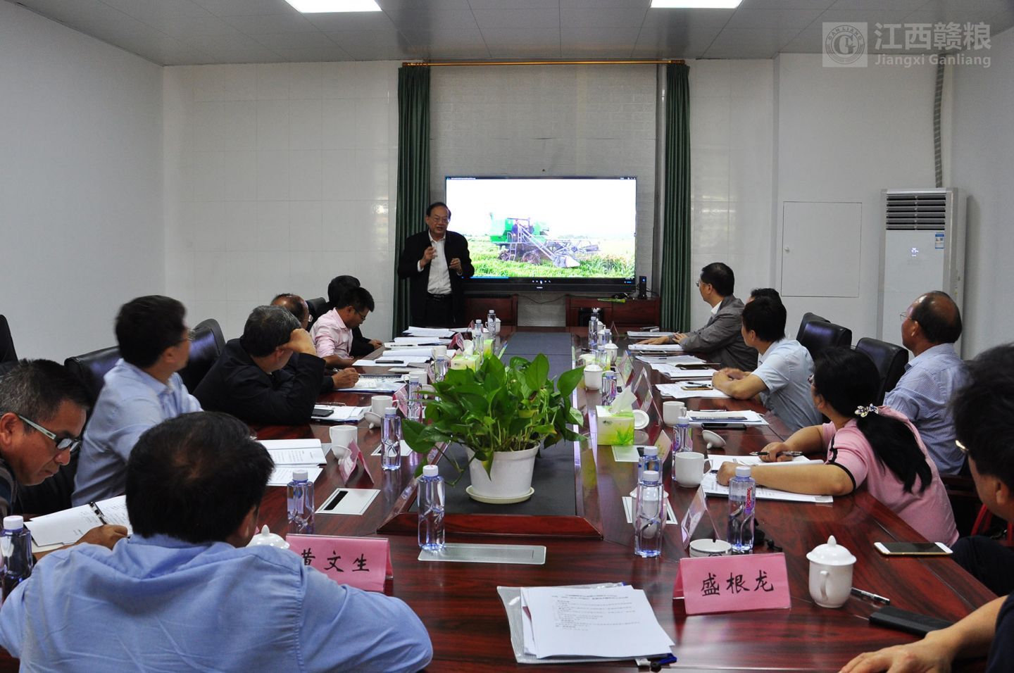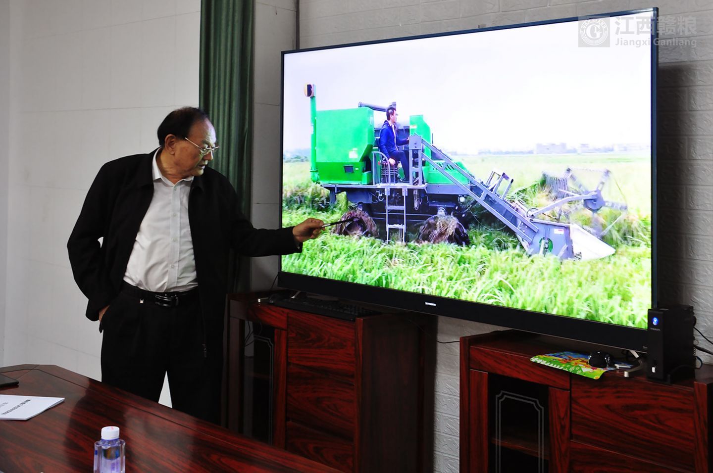 隨后,院士一行在贛糧公司院士工作站進行水稻“優(yōu)質(zhì)品種+高產(chǎn)栽培技術+全程機械化”配套技術融合研討,院士工作站向院士、領導、專家一行詳細匯報了贛糧國內(nèi)外項目實施進展情況。三位院士聽取匯報后,先后進行了認真指導。會上,羅錫文院士展示了團隊最新研究的第三代輪式水稻收割機,對解決再生稻第一季機收碾壓問題有很好的效果。