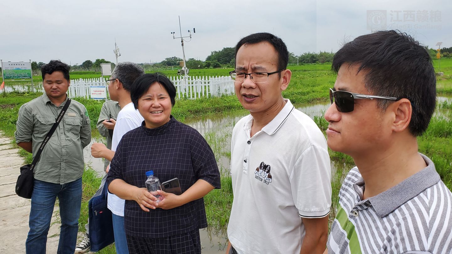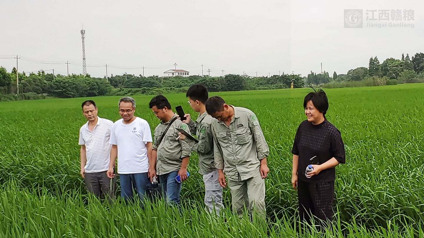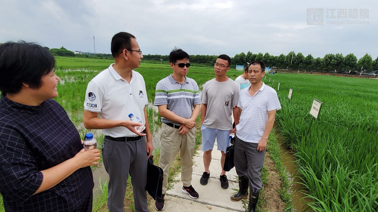 2020年06月10日,南昌縣農(nóng)業(yè)農(nóng)村局農(nóng)技站站長胡友發(fā)、植保站站長劉方義、種子站副站長萬禮根以及產(chǎn)業(yè)科科長萬浪華等專家一行到贛糧公司院士工作站岡上基地進(jìn)行農(nóng)技指導(dǎo),專家一行深入田間仔細(xì)觀察水稻長勢,對(duì)不同品種的水稻提出了不同的管理建議。特別是對(duì)基地水稻夏季病蟲害的綜合防治提出了寶貴意見。