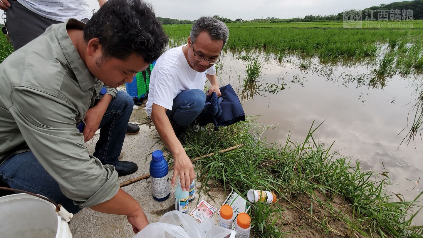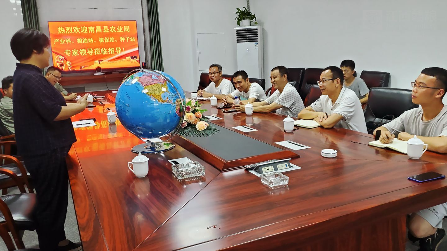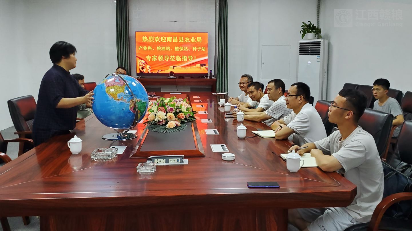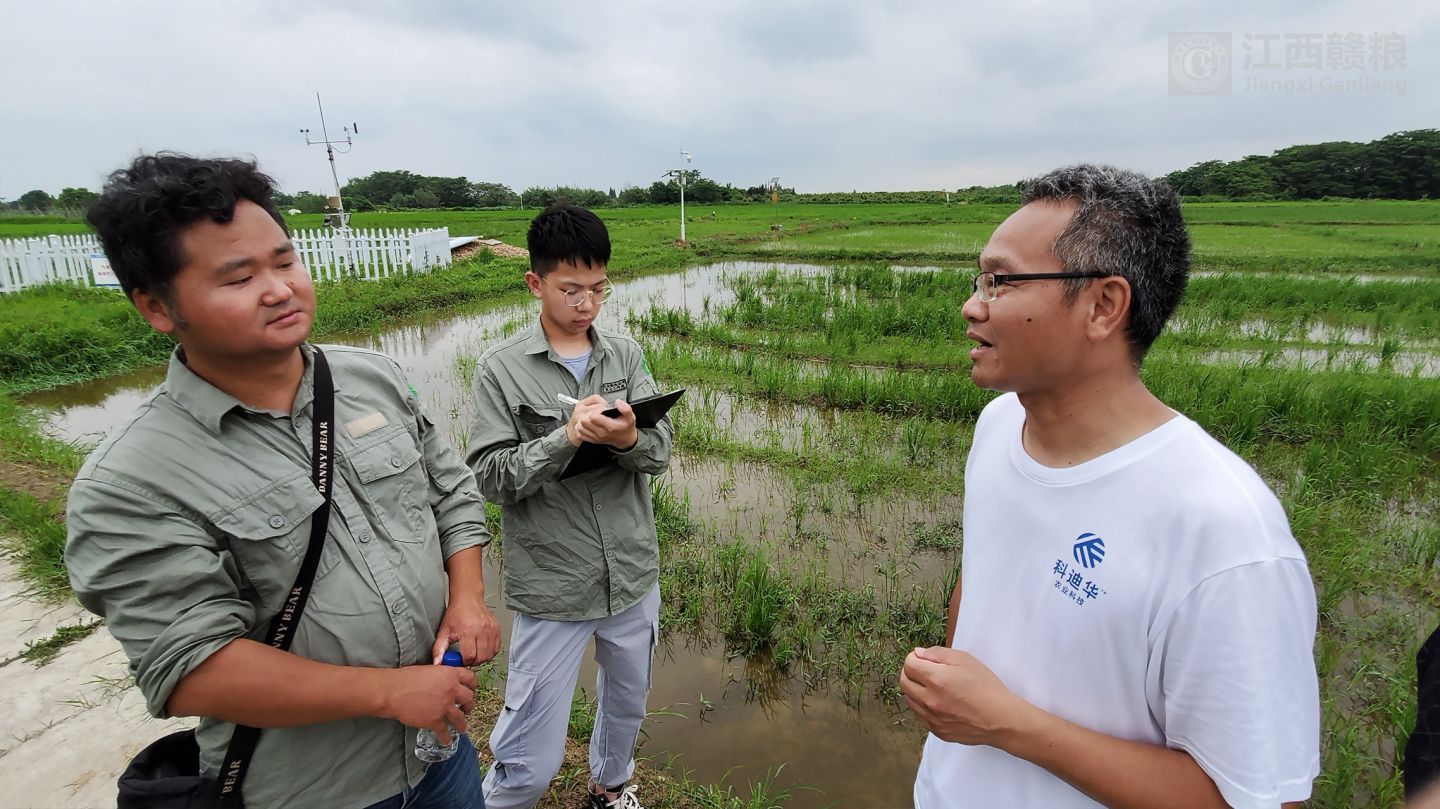 2020年06月10日,南昌縣農(nóng)業(yè)農(nóng)村局農(nóng)技站站長胡友發(fā)、植保站站長劉方義、種子站副站長萬禮根以及產(chǎn)業(yè)科科長萬浪華等專家一行到贛糧公司院士工作站岡上基地進(jìn)行農(nóng)技指導(dǎo),專家一行深入田間仔細(xì)觀察水稻長勢,對(duì)不同品種的水稻提出了不同的管理建議。特別是對(duì)基地水稻夏季病蟲害的綜合防治提出了寶貴意見。