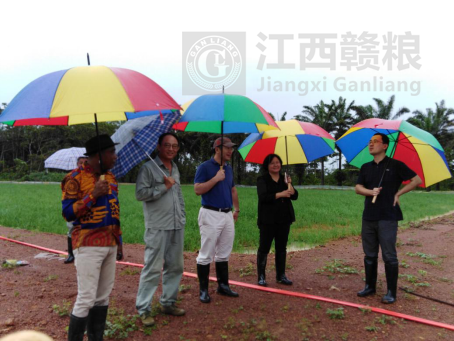 匯報(bào)結(jié)束后,王岳處長(zhǎng)和蘇建國(guó)參贊冒雨參觀了示范農(nóng)場(chǎng)蔬菜、水稻等種植情況。在參觀水稻旱直播田水稻長(zhǎng)勢(shì)后,王岳處長(zhǎng)、蘇建國(guó)參贊詳細(xì)的詢問了水稻旱直播的生產(chǎn)過程、技術(shù)要求、推廣前景,并對(duì)此項(xiàng)技術(shù)推廣前景表示支持,對(duì)示范農(nóng)場(chǎng)的工作給予了肯定和鼓勵(lì)。他們希望農(nóng)場(chǎng)全體員工再接再厲,把援外工作做好做實(shí),合作局、經(jīng)商處將為項(xiàng)目組提供強(qiáng)有力的支持和保障。