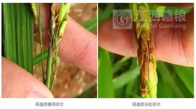 穗頸瘟:初形成褐色小點,放展后使穗頸部變褐,也造成枯白穗,發(fā)病晚的造成秕谷。