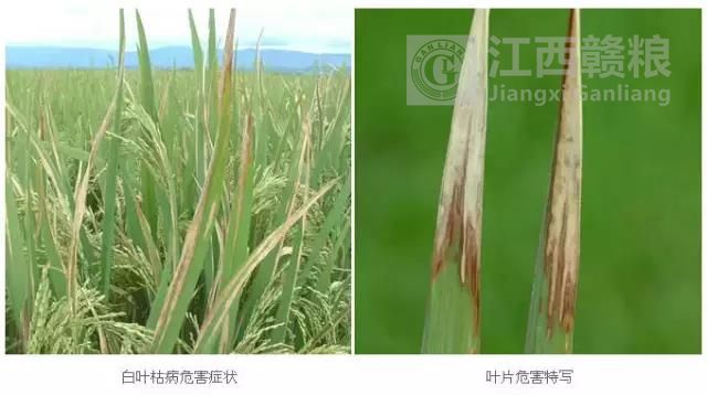 2、白葉枯病形成枯心苗后,其他葉片也逐漸青枯卷縮,最后全株枯死,剝開新青卷的心葉或折斷的莖部或切斷病葉,用力擠壓,可見有黃白色菌膿溢出??煞譃槿~枯、急性凋萎、黃化三種類型。