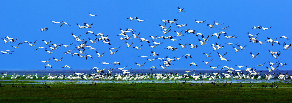 2400多條河流匯聚而成的鄱陽湖,是中國最大的淡水湖,全球重要的濕地,全世界98%的白鶴棲息在它的飛鳥天堂。