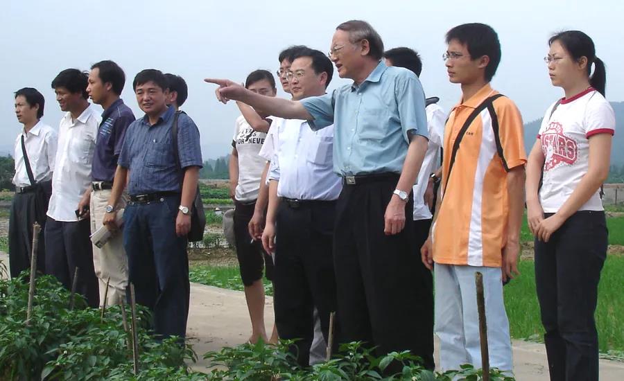 羅錫文院士(右3)在田頭指導(dǎo)研究生