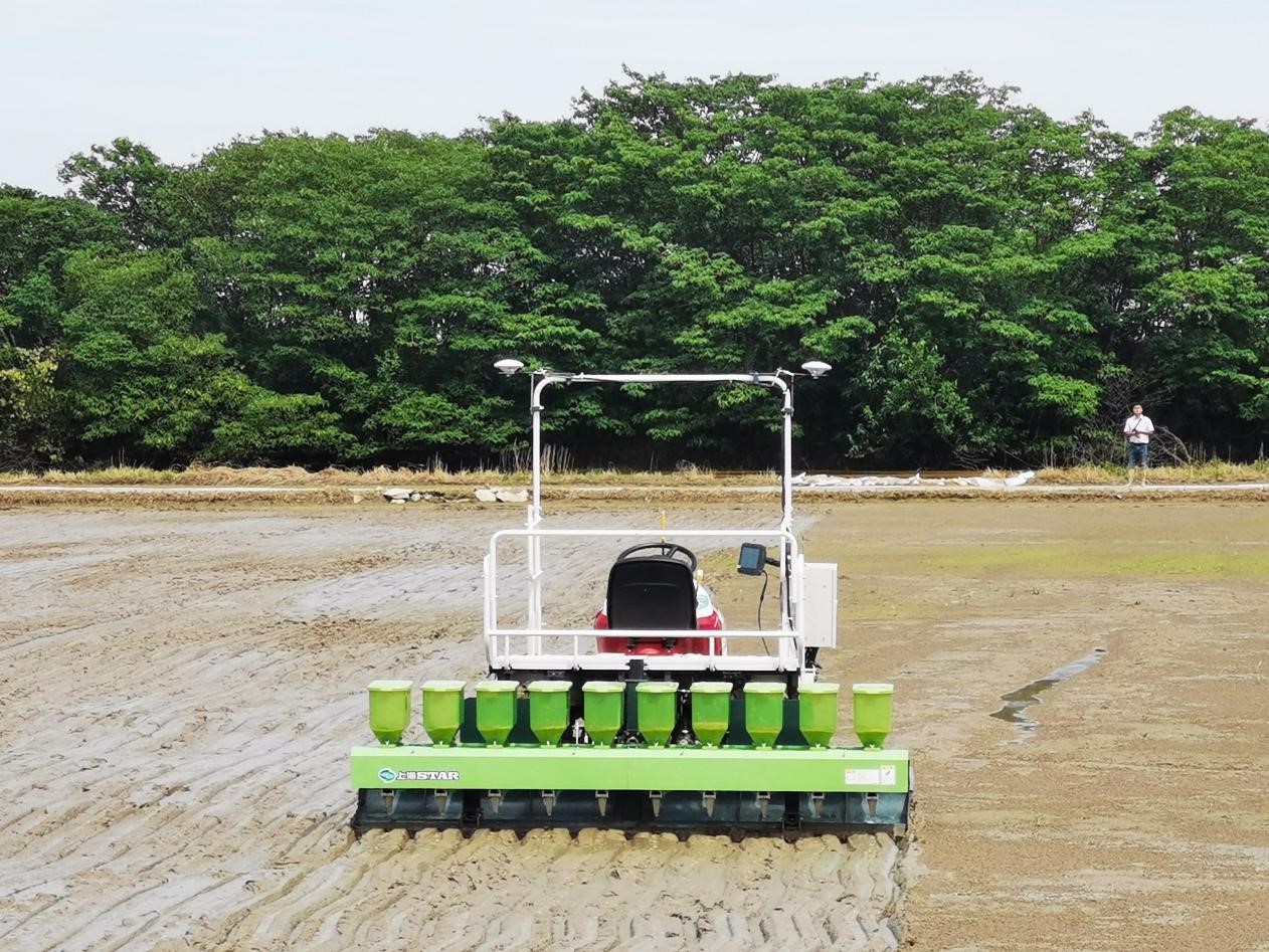 當(dāng)技術(shù)人員發(fā)出作業(yè)指令后,一臺無人駕駛的水稻精量穴直播機(jī)從道路緩緩駛?cè)胱鳂I(yè)田塊,根據(jù)技術(shù)人員預(yù)先設(shè)定好行進(jìn)路線在平整寬闊的水田里來回穿梭,在它自己“溜達(dá)”的同時,就把水稻種子精準(zhǔn)整齊地播到了田里。行駛路線筆直,掉頭快速,撒種精準(zhǔn)。短短30分鐘的時間,一塊8畝左右的水田就已經(jīng)完成了播種。作業(yè)任務(wù)完成后,直播機(jī)又自動從田里上岸。無人駕駛直播機(jī)順利完成播種作業(yè),標(biāo)志著江西贛糧院士工作站無人農(nóng)場正式開啟無人作業(yè)模式。