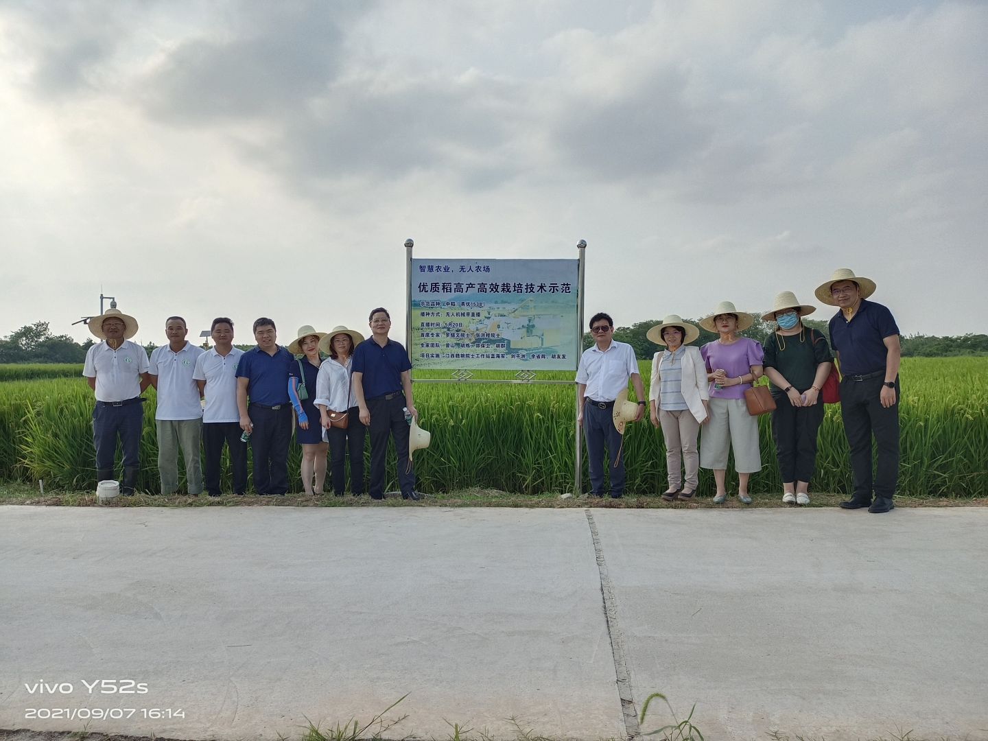江西贛糧公司院士工作站陳大洲主任陪同,藍(lán)海軍副主任向調(diào)研小組詳細(xì)匯報(bào)了工作站岡上基地水稻智慧農(nóng)業(yè)和無(wú)人農(nóng)場(chǎng)項(xiàng)目實(shí)施情況。隨后,基地負(fù)責(zé)人劉平洲場(chǎng)長(zhǎng)向調(diào)研小組介紹了基地水稻試驗(yàn)示范情況和再生稻生產(chǎn)情況。調(diào)研小組認(rèn)真聽(tīng)取了匯報(bào),對(duì)贛糧公司智慧農(nóng)業(yè)項(xiàng)目工作開(kāi)展情況表示肯定,觀看到無(wú)人農(nóng)場(chǎng)的一片稻田生長(zhǎng)很好!稻穗成墊墊的,正在成熟的稻谷金黃色可好看的,表示將繼續(xù)關(guān)注無(wú)人農(nóng)場(chǎng)后期生產(chǎn)情況,收獲時(shí)再來(lái)觀摩現(xiàn)場(chǎng)。