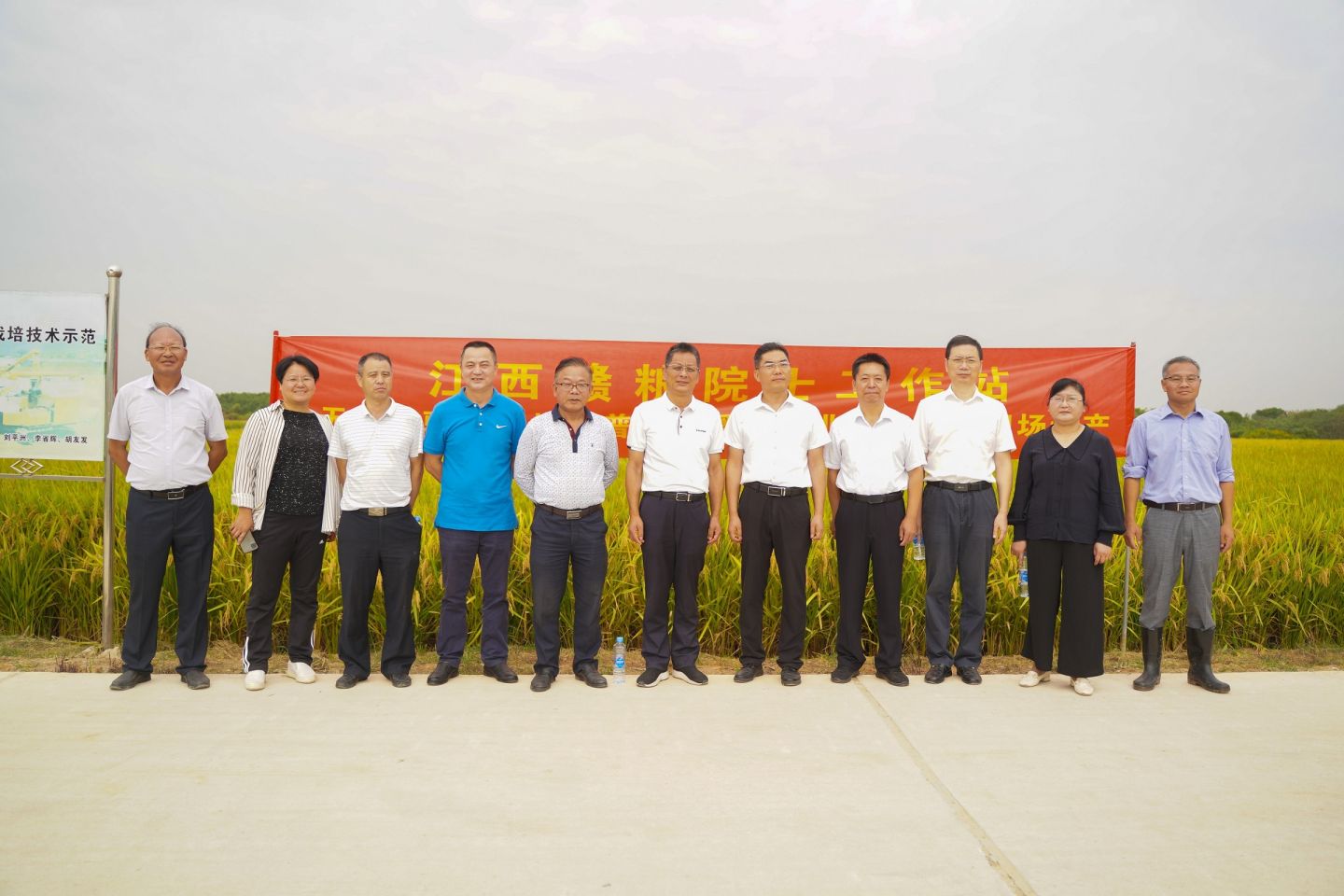 院士一行現(xiàn)場(chǎng)觀摩贛糧公司院士工作站南昌岡上基地再生稻試驗(yàn)示范合影