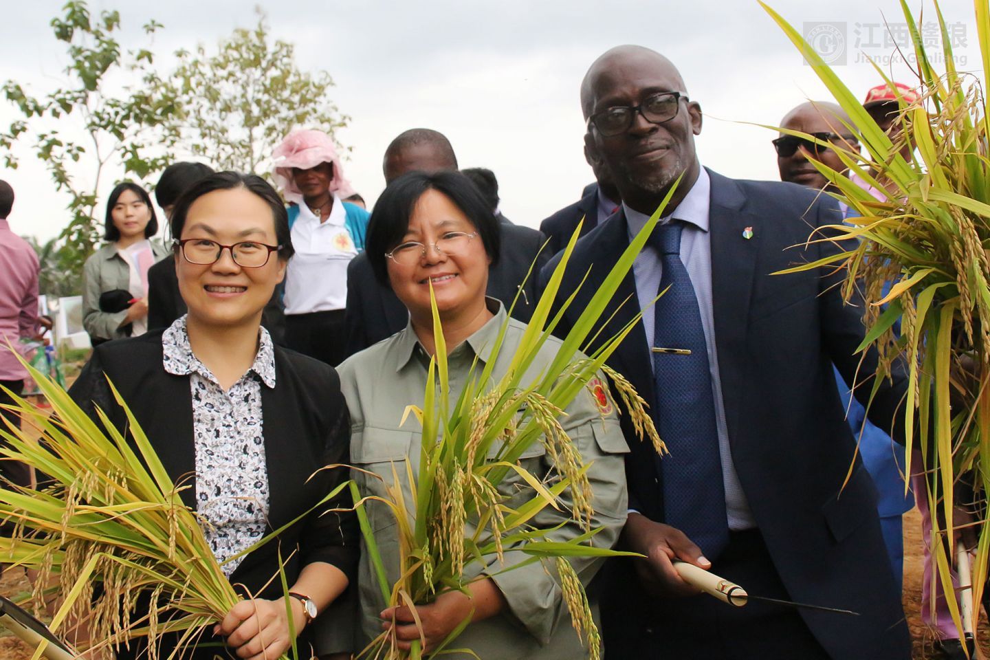 亓玫大使、阿卡波部長出席示范農(nóng)場水稻播種和收獲活動