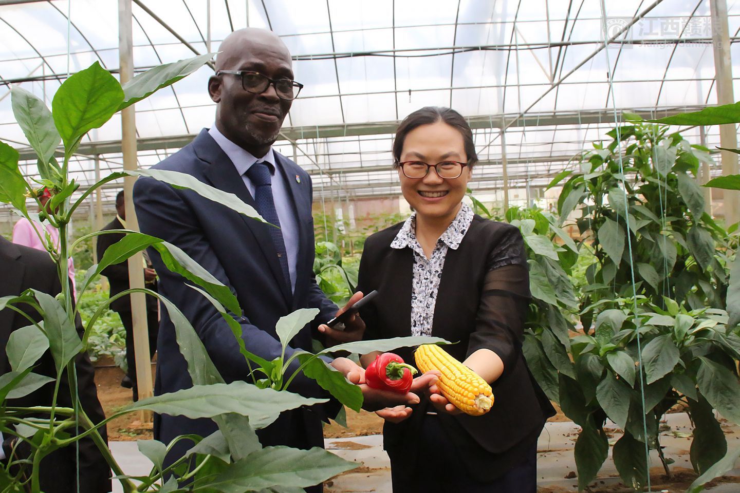 亓玫大使、阿卡波部長視察蔬菜種植情況