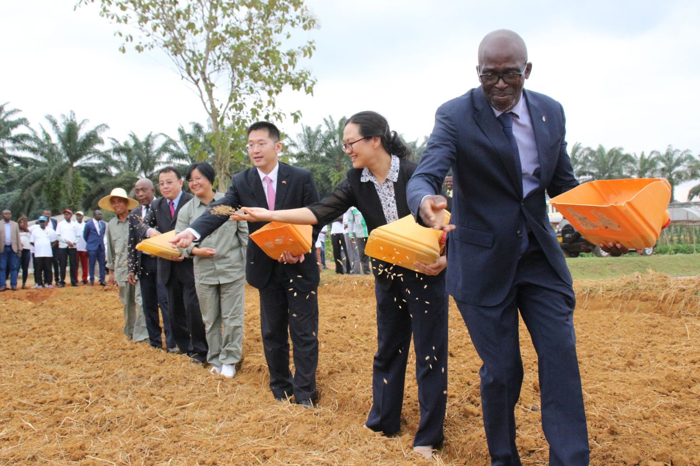 亓玫大使與阿卡波部長共同播種“美好希望”的水稻種子